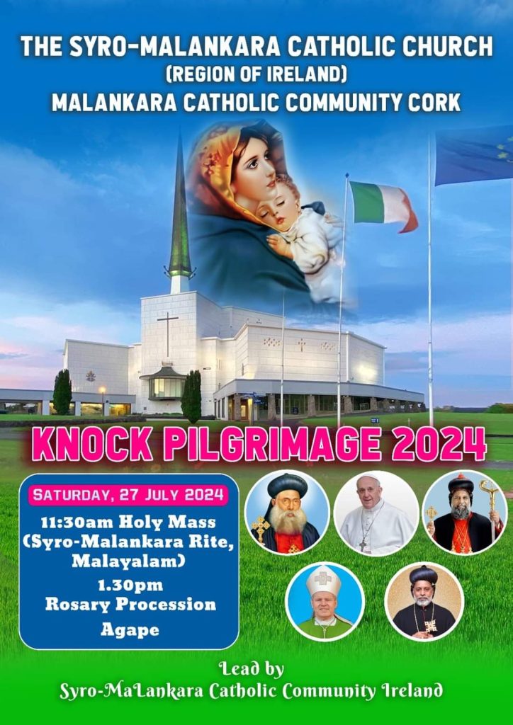 സിറോ മലങ്കര കാത്തലിക് ചർച്ചിന്റെ (അയർലണ്ട് റീജിയൻ) കീഴിലുള്ള മലങ്കര കാത്തലിക് കമ്മ്യൂണിറ്റി കോർക്കിന്റെ 2024 നോക്ക് തീർത്ഥാടനം നാളെ (ജൂലൈ 27, ശനി). അതിന്റെ ഭാഗമായുള്ള ഹോളി മാസ്സ് രാവിലെ 11.30-ന് നടക്കും. സിറോ മലങ്കര ക്രമത്തിൽ മലയാളത്തിൽ ആണ് കുർബാന. തുടർന്ന് 1.30-ന് യാത്ര ആരംഭിക്കും.