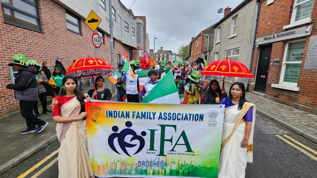 അയര്ലണ്ടിന്റെ ദേശീയ ആഘോഷമായ സെന്റ് പാട്രിക്സ് ഡേയില് ഇന്ത്യന് സംസ്കാരത്തെയും ഉള്ക്കൊള്ളിച്ച് Indian Family Association (IFA) ദ്രോഗഡ. മാര്ച്ച് 17 ഞായറാഴ്ച ദ്രോഗഡയില് നടന്ന സെന്റ് പാട്രിക്സ് ദിന പരേഡില് ഇന്ത്യന് പതാകകള്ക്ക് പുറമെ, പുലികളിയും, മുത്തുക്കുടയുമടക്കമുള്ള തനത് കേരളീയ കലാരൂപങ്ങളുമായി IFA കളം നിറഞ്ഞു. കുട്ടികളടക്കം നിരവധി പേര് പങ്കെടുത്ത പരേഡ്, അയര്ലണ്ടുകാര്ക്കും പുതിയ അനുഭവമായി.