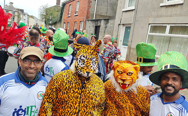 അയര്ലണ്ടിന്റെ ദേശീയ ആഘോഷമായ സെന്റ് പാട്രിക്സ് ഡേയില് ഇന്ത്യന് സംസ്കാരത്തെയും ഉള്ക്കൊള്ളിച്ച് Indian Family Association (IFA) ദ്രോഗഡ. മാര്ച്ച് 17 ഞായറാഴ്ച ദ്രോഗഡയില് നടന്ന സെന്റ് പാട്രിക്സ് ദിന പരേഡില് ഇന്ത്യന് പതാകകള്ക്ക് പുറമെ, പുലികളിയും, മുത്തുക്കുടയുമടക്കമുള്ള തനത് കേരളീയ കലാരൂപങ്ങളുമായി IFA കളം നിറഞ്ഞു. കുട്ടികളടക്കം നിരവധി പേര് പങ്കെടുത്ത പരേഡ്, അയര്ലണ്ടുകാര്ക്കും പുതിയ അനുഭവമായി.