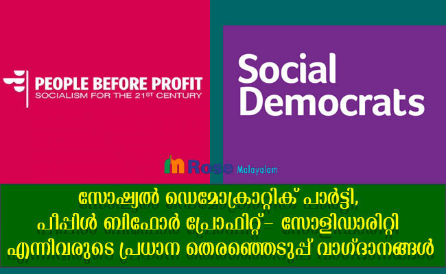 അയര്ലണ്ടിലെ പ്രധാനപ്പെട്ട രാഷ്ട്രീയ പാര്ട്ടികളായ Sinn Fein, Fine Gael, Fianna Fail എന്നിവരുടെ തെരഞ്ഞെടുപ്പ് വാഗ്ദാനങ്ങള് എന്തെല്ലാമെന്ന് നമ്മള് നേരത്തെ വായിച്ചിരുന്നു. ഇതാ രാജ്യത്തെ ചെറിയ പാര്ട്ടികളായ സോഷ്യല് ഡെമോക്രാറ്റ്സ്, പീപ്പിള് ബിഫോര് പ്രോഫിറ്റ്- സോളിഡാരിറ്റി എന്നിവരുടെ മുഖ്യ തെരഞ്ഞെടുപ്പ് വാഗ്ദാനങ്ങള് എന്തെല്ലാമെന്ന് നോക്കാം.