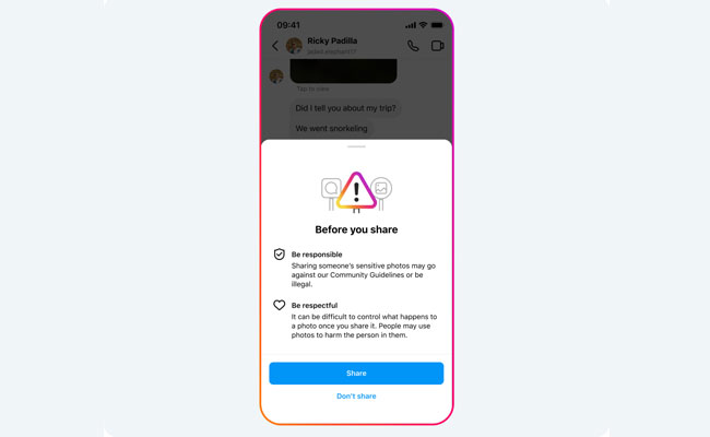 നഗ്നതയുള്ള ഫോട്ടോ ആണ് അയയ്ക്കുന്നതെങ്കില്, അയയ്ക്കുന്നയാള്ക്ക് അതിന് മുമ്പ് മുന്നറിയിപ്പ് നല്കുന്ന സംവിധാനവും പുതിയ ഫീച്ചറില് ഉണ്ട്.