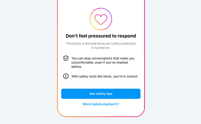 Nudity Protection എന്ന് പേരിട്ടിരിക്കുന്ന ഈ ടെക്നോളജി ഉപയോഗിച്ച്, ഇന്സ്റ്റാഗ്രാമിലെ 18 വയസിന് താഴെ പ്രായമുള്ള ഉപയോക്താക്കള്ക്ക് വരുന്ന മെസേജുകള് ആപ്പ് തന്നെ ഫില്ട്ടര് ചെയ്യുകയാണ് ചെയ്യുക. ആരെങ്കിലും മെസേജ് അയച്ചാല്, അതില് നഗ്നതയുള്ള ഫോട്ടോ ഉണ്ടെങ്കില് അത് ബ്ലര് ആയാകും കാണിക്കുക. ഒപ്പം ഈ മെസേജിന് മറുപടി നല്കാതിരിക്കാനും, അയച്ച ആളെ ബ്ലോക്ക് ചെയ്യാനും, റിപ്പോര്ട്ട് ചെയ്യാനും ഓപ്ഷനുകളുണ്ടാകുകയും ചെയ്യും.