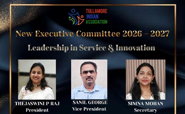 ടുള്ളമോർ, അയർലണ്ട്: ടുള്ളമോർ ഇന്ത്യൻ അസോസിയേഷൻ (TIA) 2026–2027 വർഷത്തേക്കുള്ള പുതിയ ഭരണസമിതി നിലവില് വന്നു . ഫെബ്രുവരി 6-ന് ടുള്ളമോറിലെ സെന്റ് മേരീസ് യൂത്ത് സെന്ററിൽ നടന്ന ജനറൽ ബോഡി യോഗത്തിൽ അസോസിയേഷൻ അംഗങ്ങളുടെയും, അഭ്യുദയകാംക്ഷികളുടെയും സാന്നിധ്യത്തിൽ പുതിയ ഭാരവാഹികൾ ഔദ്യോഗികമായി ചുമതലയേറ്റു.