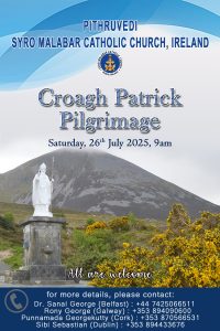 അയർലണ്ട് സീറോ മലബാർ സഭയുടെ ക്രോഗ് പാട്രിക് തീർത്ഥാടനം ജൂലൈ 26 ശനിയാഴ്ച