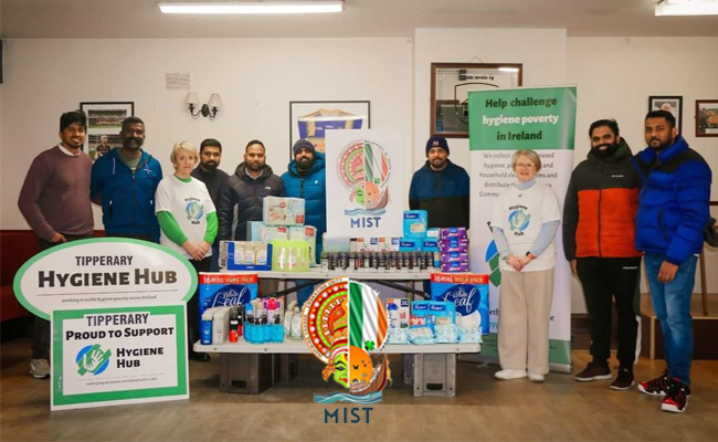 MIST കൂട്ടായ്മയുടെ ഔപചാരികമായ തുടക്കത്തിന് മുന്നോടിയായി MIST അംഗങ്ങൾ Clonmel Hygene Hub പ്രവർത്തനങ്ങൾക്കായി ഏകദേശം 100 കിലോഗ്രാം അവശ്യ വസ്തുക്കൾ സംഭാവന ചെയ്യുകയുണ്ടായി. ജനുവരി 9-ന് Clonmel-ൽ വെച്ച് സംഘടിപ്പിച്ച ചടങ്ങിൽ Hygene Hub പ്രവർത്തകരായ Phil Kehoe, Loreto എന്നിവർ ഇവ ഏറ്റു വാങ്ങി. സഹജീവികൾക്ക് കരുതലിന്റെ കരസ്പർശം നീട്ടുന്ന MIST മാതൃക അനുകരണീയം ആണെന്നും, മറ്റുള്ളവർക്കും ഇത് പ്രചോദനം നൽകട്ടെ എന്നും തുടർന്ന് നടന്ന യോഗത്തിൽ Hygene Hub ലെ Phil Kehoe പറഞ്ഞു.