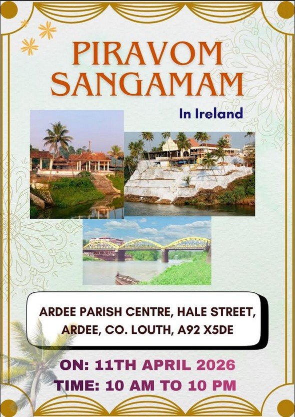 അയർലണ്ടിൽ വർഷംതോറും നടത്തി വരുന്ന പിറവം സംഗമം APRIL-11, SATURDAY, ARDEE PARISH CENTRE, CO-LOUTH- വച്ച് നടക്കുന്നവിവരം സന്തോഷപൂർവം അറിയിക്കുന്നു.