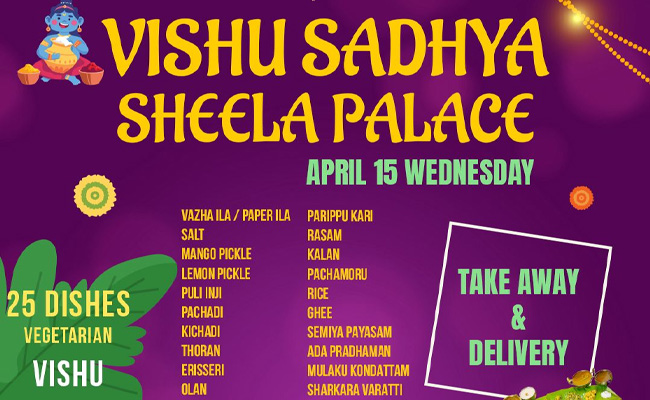 മലയാളികളുടെ പ്രശസ്തമായ ഷീല പാലസ് റസ്റ്ററന്റില് ഇന്ന് (ഏപ്രില് 15) 25 രുചികള് ചേര്ന്ന വിഷു സദ്യമേളം.
