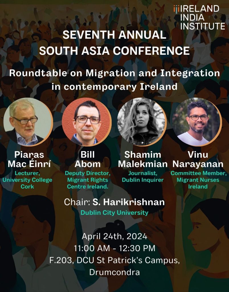 The Ireland India Institute-ന്റെ ഏഴാമത് സൗത്ത് ഏഷ്യ വാര്ഷിക സമ്മേളനം ഏപ്രില് 24, 25, 26 തീയതികളില് ഡബ്ലിനില്. F.203, DCU St Patrick’s Campus, Drumcondra-യില് വച്ചാണ് രാവിലെ 11 മണി മുതൽ ഉച്ചയ്ക്ക് 12.30 വരെ സമ്മേളനം നടക്കുക.