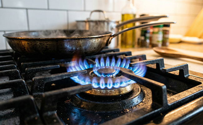 പാത്രത്തിന്റെ അടിഭാഗത്തേക്കാൾ പുറത്തേക്ക് തീജ്വാല (Flame) വരുന്നത് ഗ്യാസ് പാഴാകുന്നതിന്റെ ലക്ഷണമാണ്. പാത്രത്തിന്റെ വലിപ്പത്തിന് അനുസരിച്ച് തീ ക്രമീകരിക്കുക. തിളച്ചു തുടങ്ങിയാൽ തീ കുറച്ചുവെച്ച് (Simmer) പാകം ചെയ്യുന്നത് ഗ്യാസ് ലാഭിക്കാൻ സഹായിക്കും.